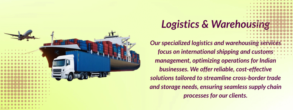 Our specialized logistics and warehousing services focus on international shipping and customs management, optimizing operations for Indian businesses. We offer reliable, cost-effective solutions tailored to streamline cross-border trade and storage needs, ensuring seamless supply chain processes for our clients.